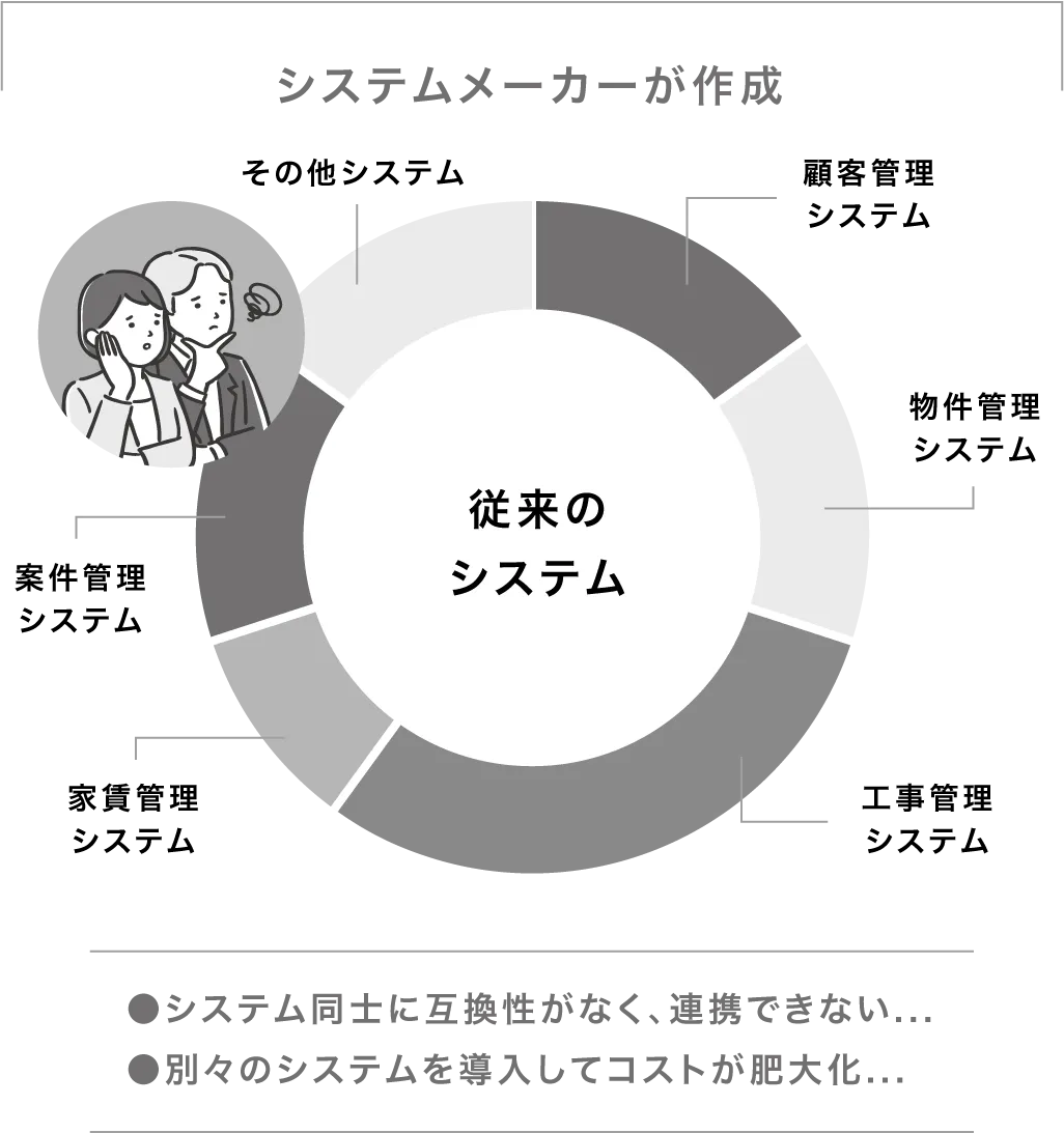 例えば、自社には必要のない機能が多数含まれていたり、データの出し入れに制約があったり、業務によって相互に連携できない複数のシステムを使わざるを得なかったり、余分だと感じるコストが発生していたことも経験しました。